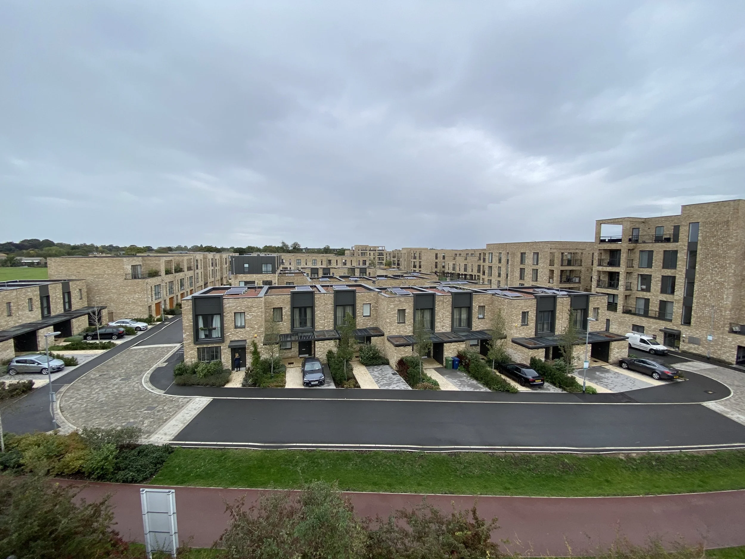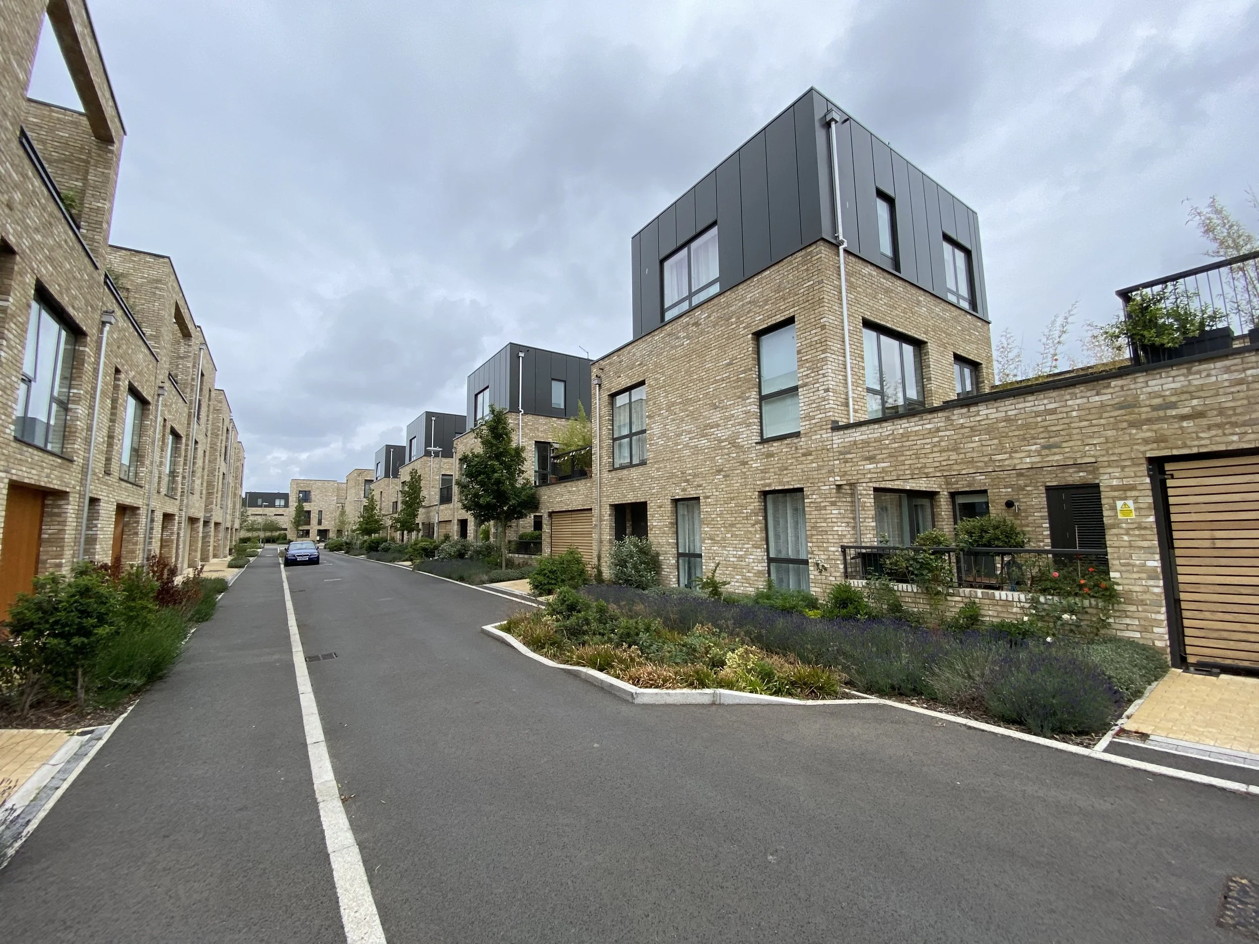 Later phases of the project located toward the centre of the Clay Farm site include a range of commercial spaces, landscape podium gardens which hide car parking and homes set around a traffic free playable garden square which helps enhance the quality of walking and cycling links between the existing village of Trumpington and the new Community facilities at the heart of the Clay Farm Development.