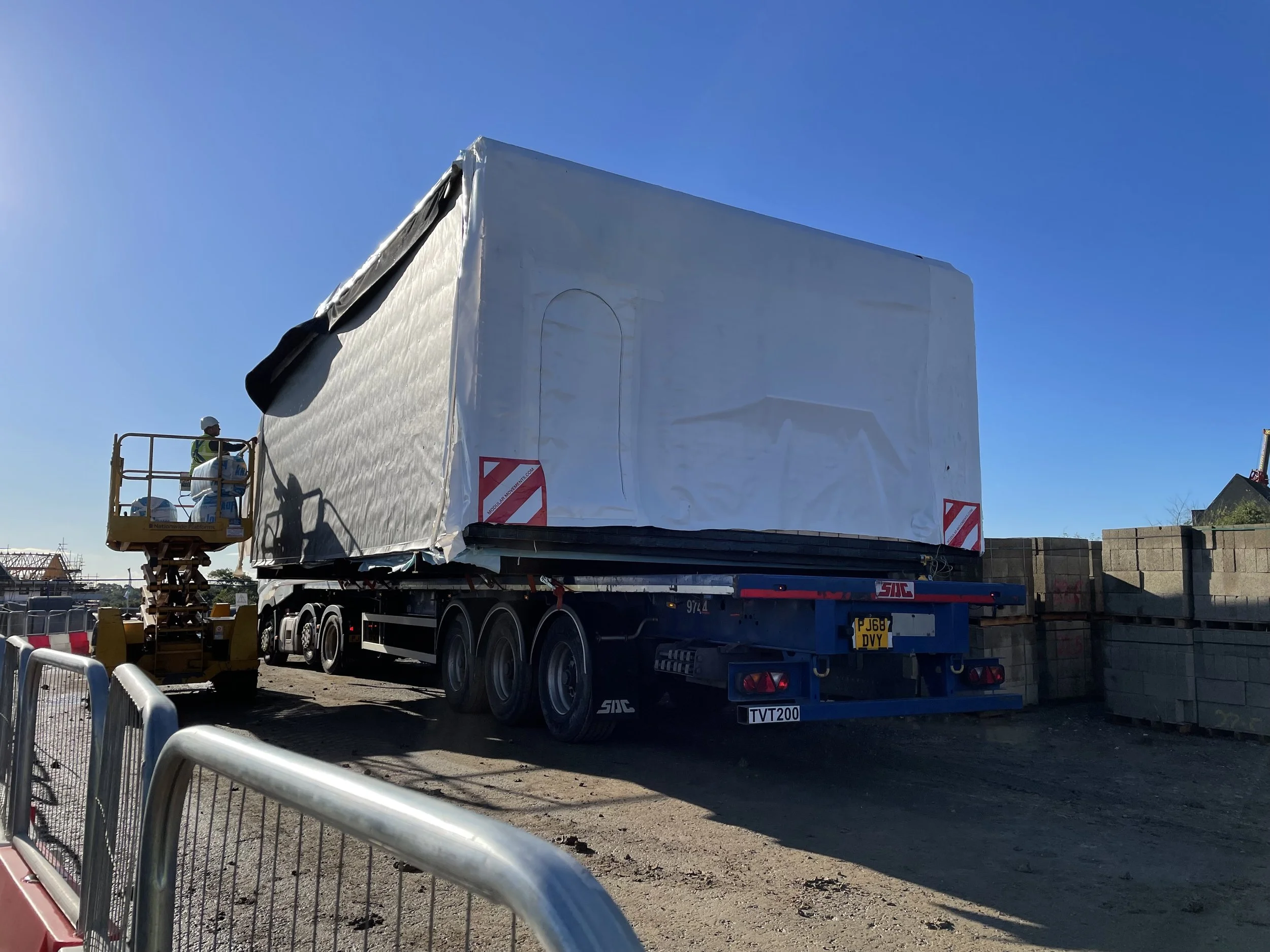 Fully shrink-wrapped Modules are delivered to site from the ILKE homes factory located in North Yorkshire. Once on site they undergo various site preparation works prior to installation.